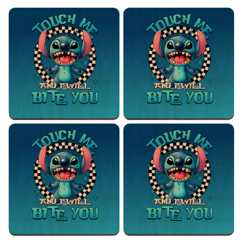 Stitch Touch Me And I Will Bite You, ΣΕΤ x4 Σουβέρ ξύλινα τετράγωνα plywood (9cm)