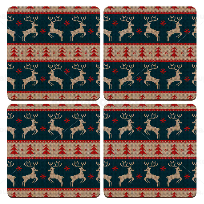 Deer knitted blue, ΣΕΤ x4 Σουβέρ ξύλινα τετράγωνα plywood (9cm)