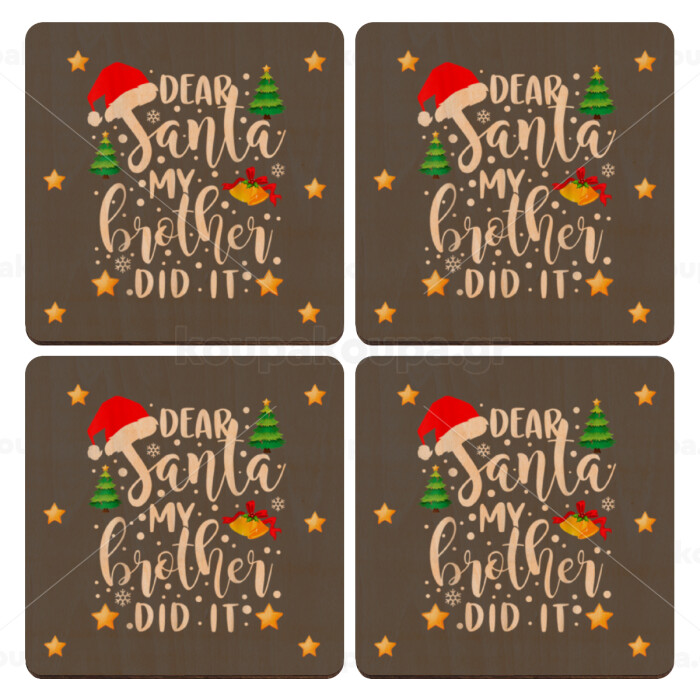 Dear santa my Brother did it, ΣΕΤ x4 Σουβέρ ξύλινα τετράγωνα plywood (9cm)