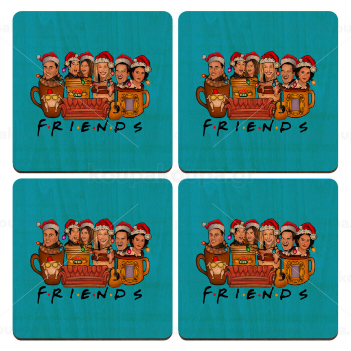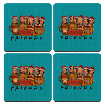 FRIENDS xmas, ΣΕΤ x4 Σουβέρ ξύλινα τετράγωνα plywood (9cm)