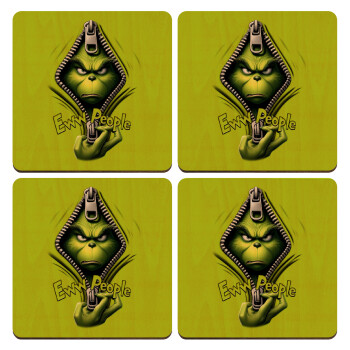 Grinch, eww people, ΣΕΤ x4 Σουβέρ ξύλινα τετράγωνα plywood (9cm)