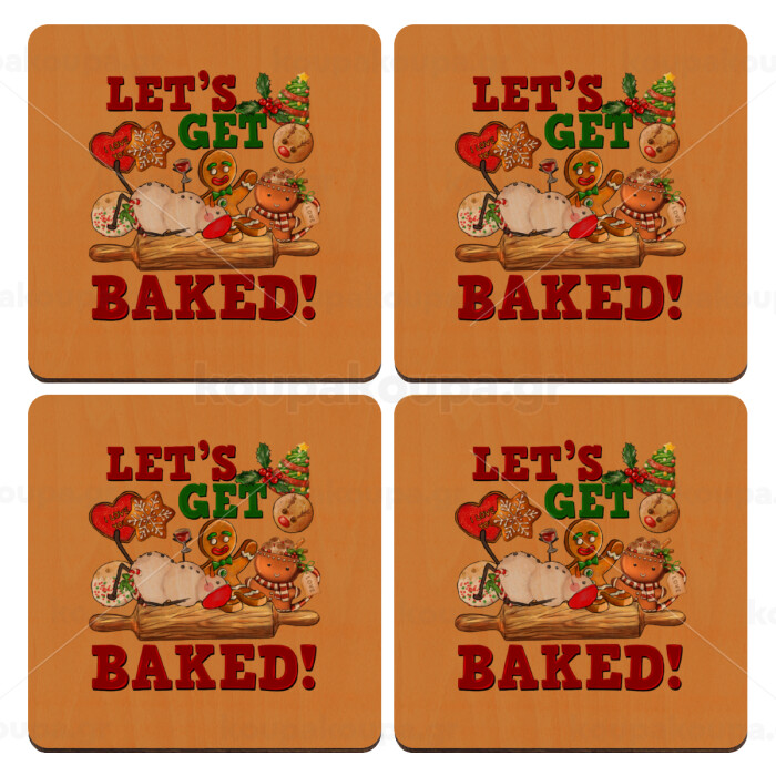 Let's get baked, ΣΕΤ x4 Σουβέρ ξύλινα τετράγωνα plywood (9cm)