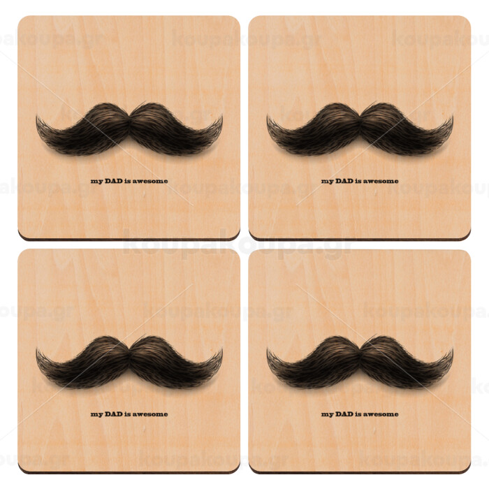 Ο καλύτερος μουστακαλής του κόσμου!!!, ΣΕΤ x4 Σουβέρ ξύλινα τετράγωνα plywood (9cm)