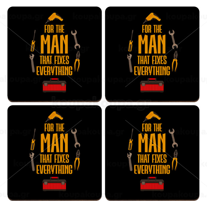 For the man that fixes everything!, ΣΕΤ x4 Σουβέρ ξύλινα τετράγωνα plywood (9cm)