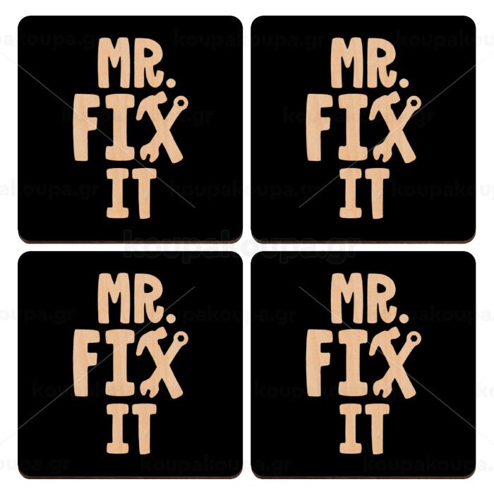 Mr fix it, ΣΕΤ x4 Σουβέρ ξύλινα τετράγωνα plywood (9cm)