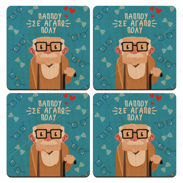 Παππού σε αγαπώ πολύ!, ΣΕΤ x4 Σουβέρ ξύλινα τετράγωνα plywood (9cm)