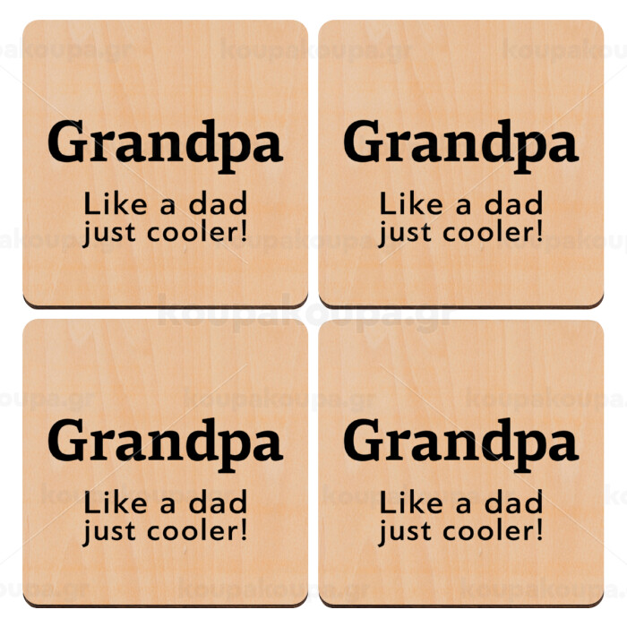 Grandpa, like a dad, just cooler, ΣΕΤ x4 Σουβέρ ξύλινα τετράγωνα plywood (9cm)