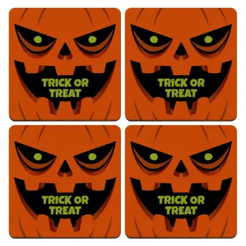 Halloween trick or treat Pumpkins, ΣΕΤ x4 Σουβέρ ξύλινα τετράγωνα plywood (9cm)