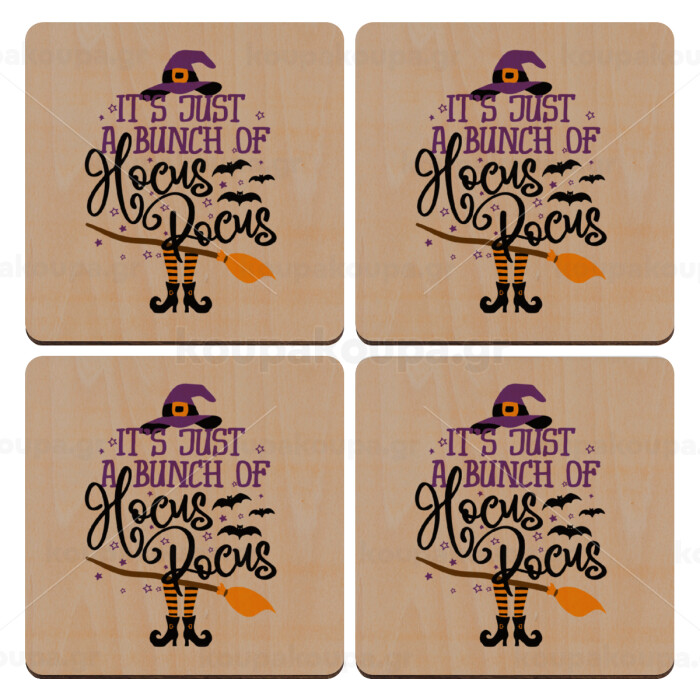 It's just a bunch of hocus pocus - halloween, ΣΕΤ x4 Σουβέρ ξύλινα τετράγωνα plywood (9cm)