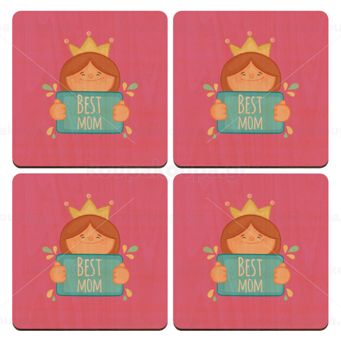 Best mom Princess, ΣΕΤ x4 Σουβέρ ξύλινα τετράγωνα plywood (9cm)