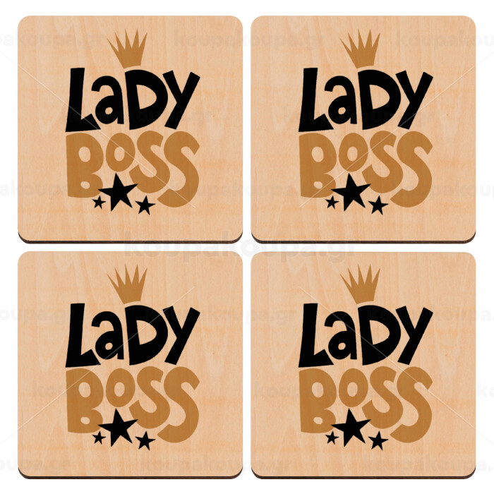 Lady Boss, ΣΕΤ x4 Σουβέρ ξύλινα τετράγωνα plywood (9cm)