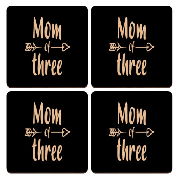 Mom of three, ΣΕΤ x4 Σουβέρ ξύλινα τετράγωνα plywood (9cm)