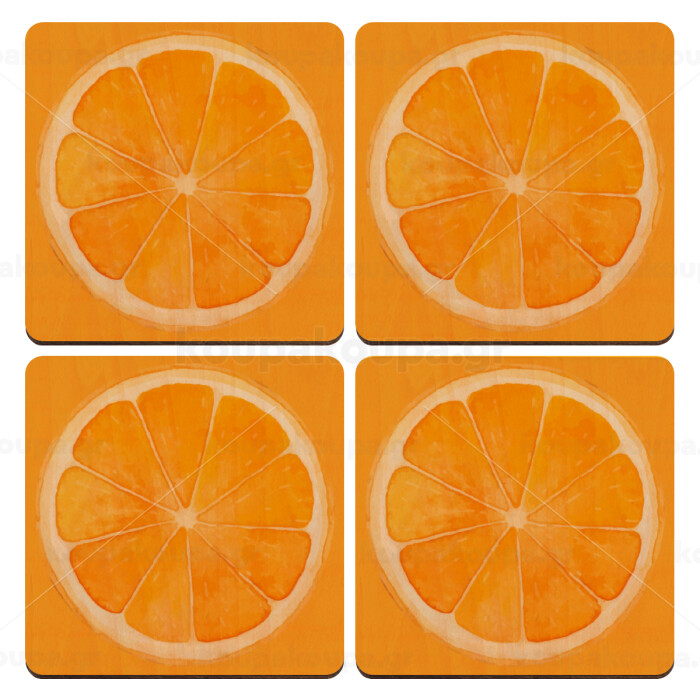 Orange, ΣΕΤ x4 Σουβέρ ξύλινα τετράγωνα plywood (9cm)