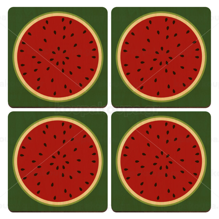 Watermelon, ΣΕΤ x4 Σουβέρ ξύλινα τετράγωνα plywood (9cm)