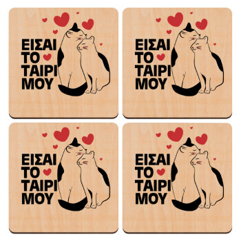 Είσαι το ταίρι μου, ΣΕΤ x4 Σουβέρ ξύλινα τετράγωνα plywood (9cm)