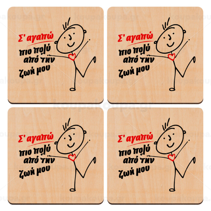 Σ'αγαπώ πιο πολύ από την ζωή μου!!!, ΣΕΤ x4 Σουβέρ ξύλινα τετράγωνα plywood (9cm)