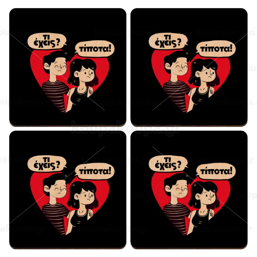 Τι έχεις? Τίποτα!, ΣΕΤ x4 Σουβέρ ξύλινα τετράγωνα plywood (9cm)