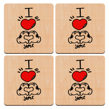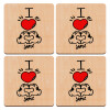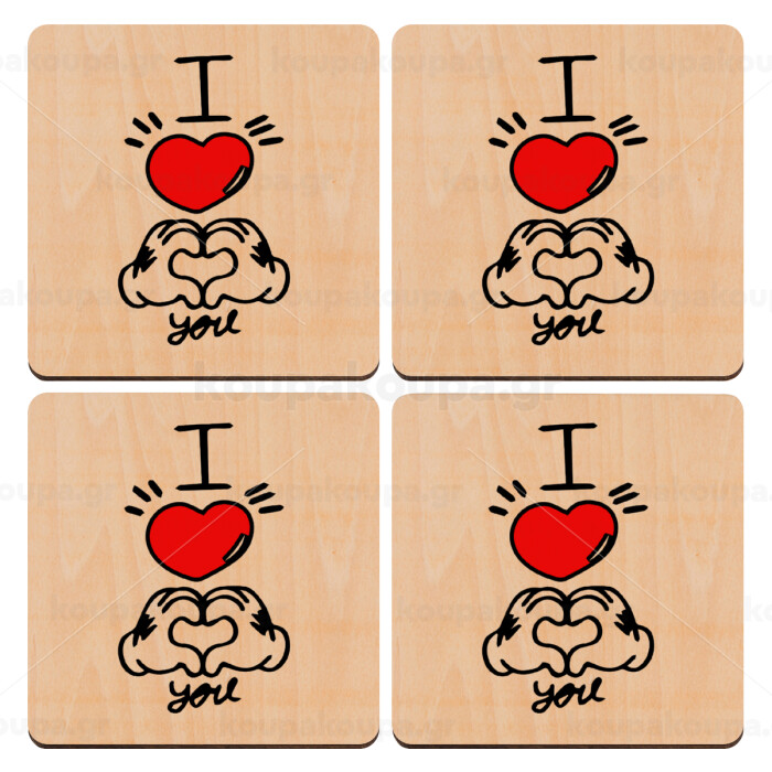 comics hands love, ΣΕΤ x4 Σουβέρ ξύλινα τετράγωνα plywood (9cm)