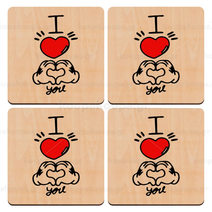 comics hands love, ΣΕΤ x4 Σουβέρ ξύλινα τετράγωνα plywood (9cm)
