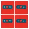 I Love You text message, ΣΕΤ x4 Σουβέρ ξύλινα τετράγωνα plywood (9cm)