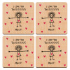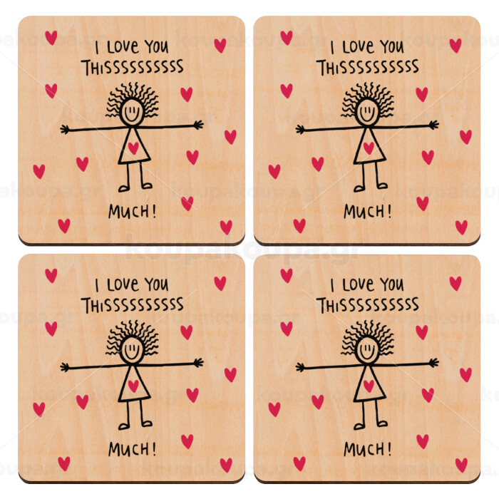 I Love you thissss much..., ΣΕΤ x4 Σουβέρ ξύλινα τετράγωνα plywood (9cm)