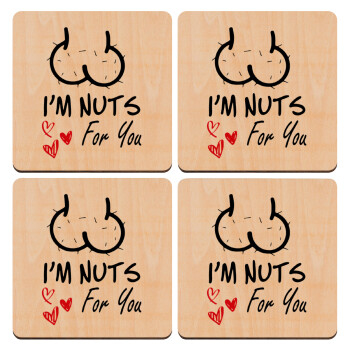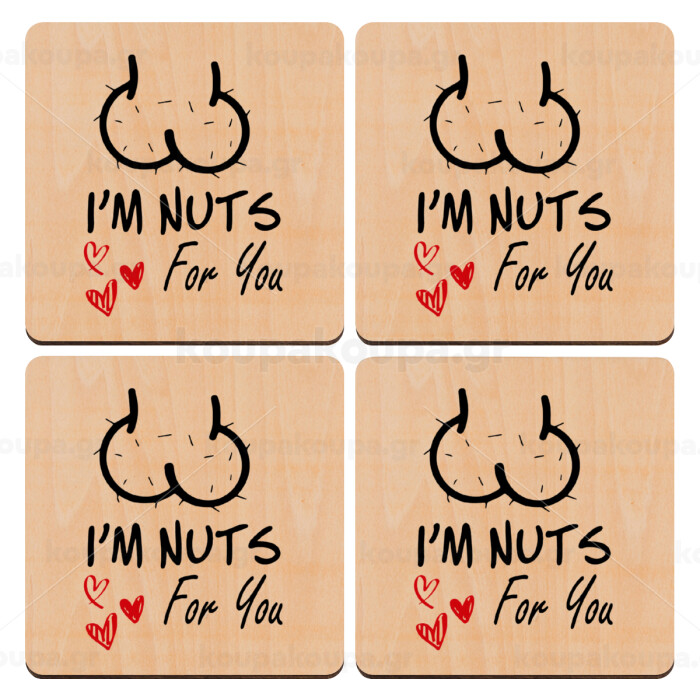 I'm Nuts for you, ΣΕΤ x4 Σουβέρ ξύλινα τετράγωνα plywood (9cm)