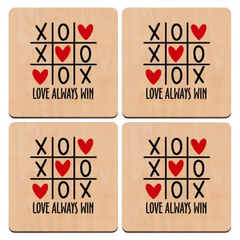 Love always win, ΣΕΤ x4 Σουβέρ ξύλινα τετράγωνα plywood (9cm)
