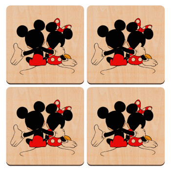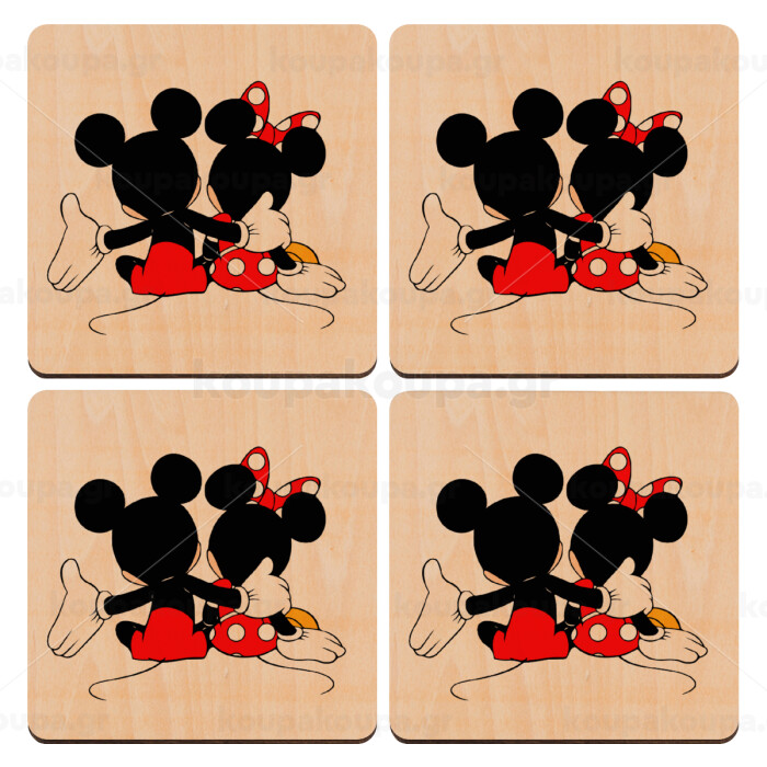 mickey and minnie hags, ΣΕΤ x4 Σουβέρ ξύλινα τετράγωνα plywood (9cm)