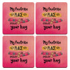 My favorite place is inside your HUG, ΣΕΤ x4 Σουβέρ ξύλινα τετράγωνα plywood (9cm)