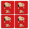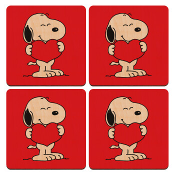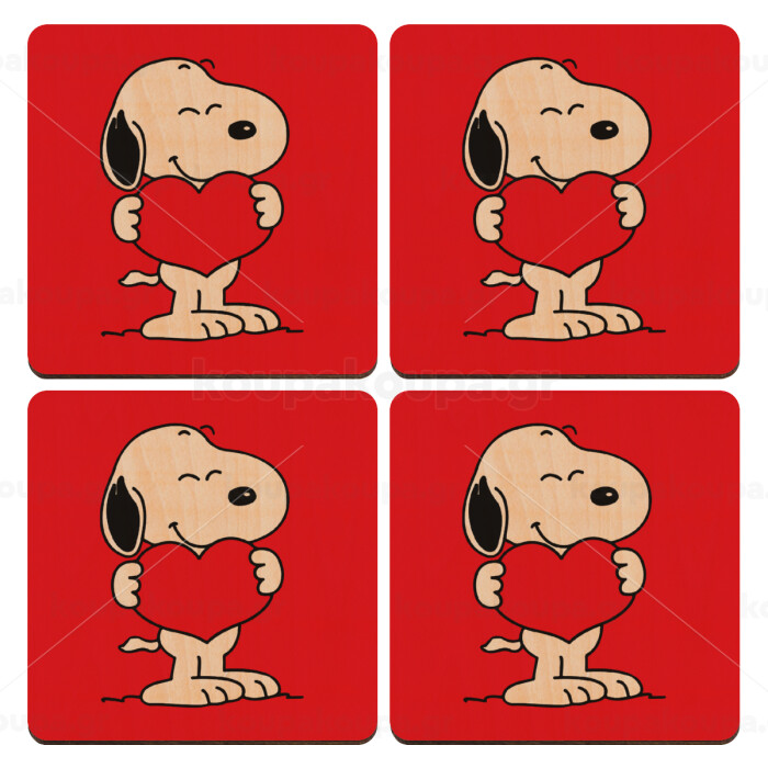 Snoopy takemy heart, ΣΕΤ x4 Σουβέρ ξύλινα τετράγωνα plywood (9cm)