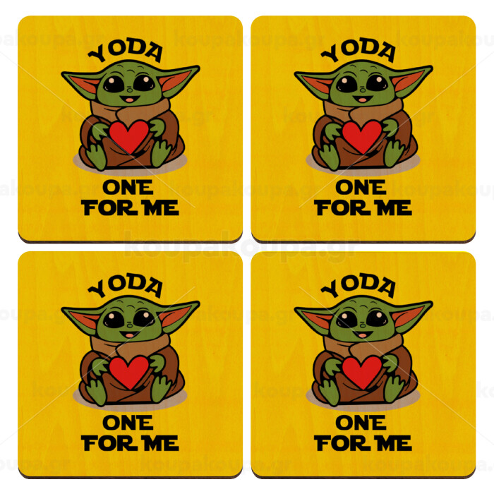 Yoda, one for me , ΣΕΤ x4 Σουβέρ ξύλινα τετράγωνα plywood (9cm)
