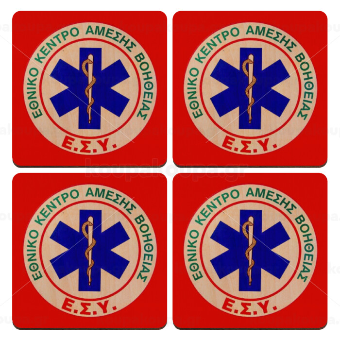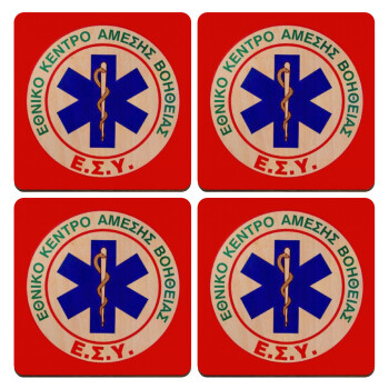 ΕΚΑΒ, ΣΕΤ x4 Σουβέρ ξύλινα τετράγωνα plywood (9cm)