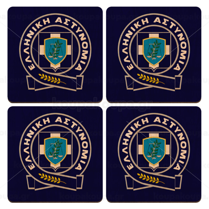 Ελληνική Αστυνομία, ΣΕΤ x4 Σουβέρ ξύλινα τετράγωνα plywood (9cm)