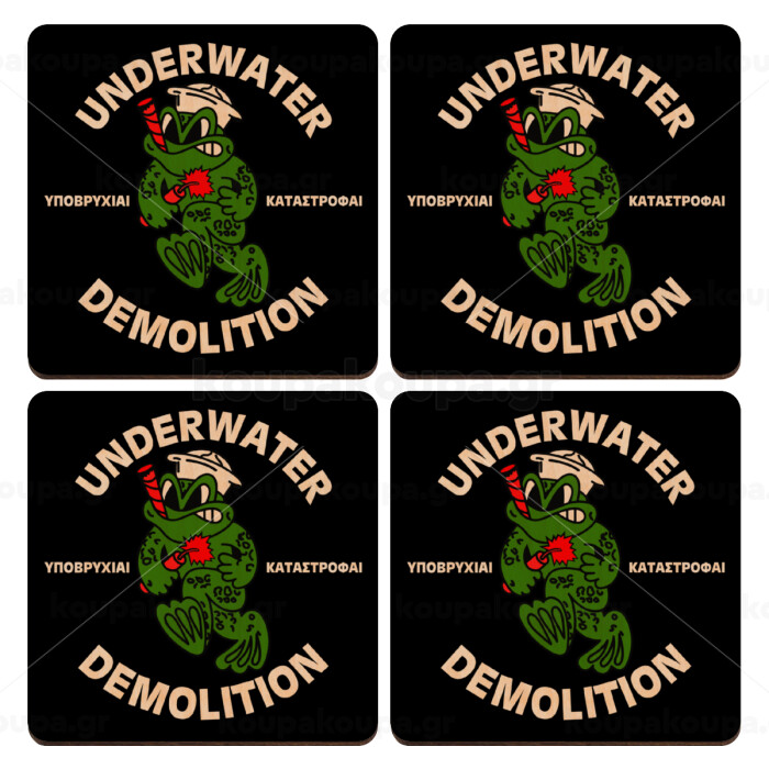 Underwater Demolition, ΣΕΤ x4 Σουβέρ ξύλινα τετράγωνα plywood (9cm)