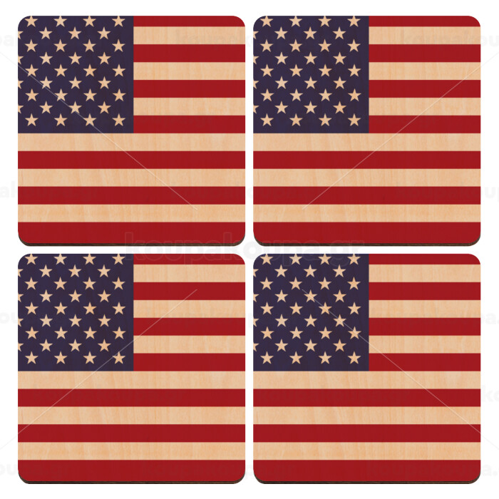 USA Flag, ΣΕΤ x4 Σουβέρ ξύλινα τετράγωνα plywood (9cm)