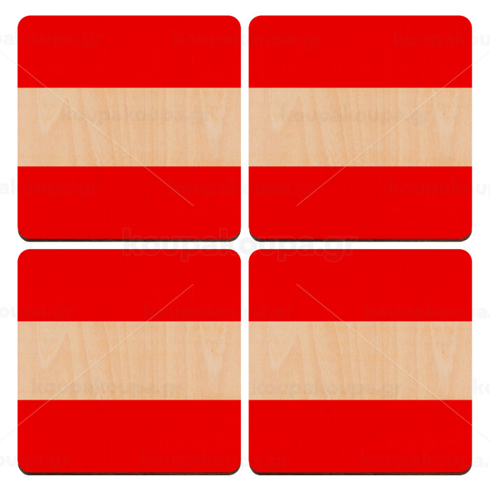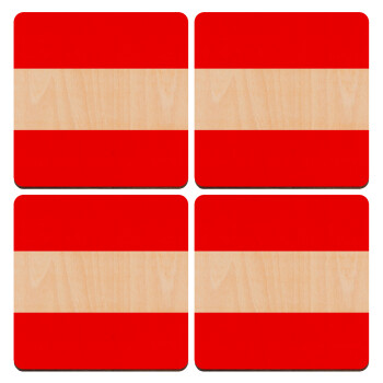 Austria flag, ΣΕΤ x4 Σουβέρ ξύλινα τετράγωνα plywood (9cm)