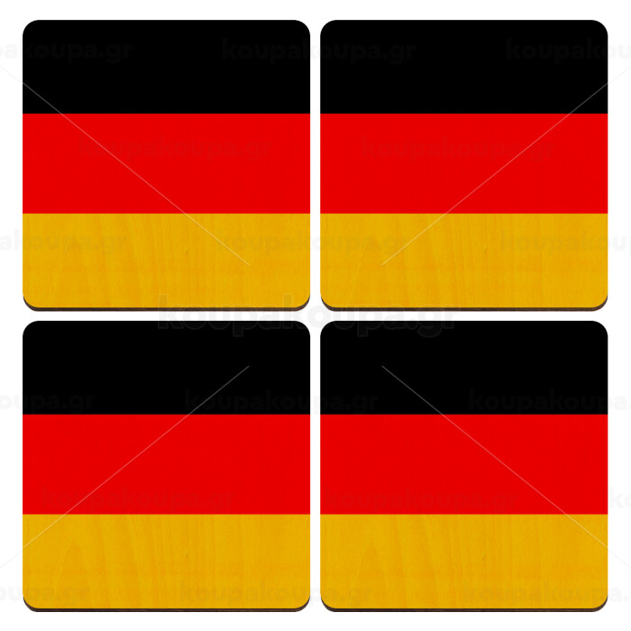 Germany flag, ΣΕΤ x4 Σουβέρ ξύλινα τετράγωνα plywood (9cm)
