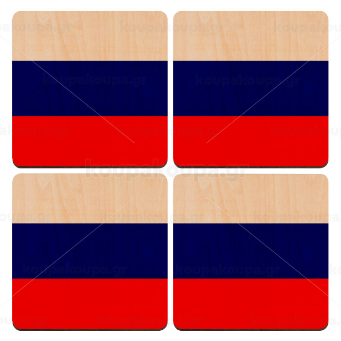 Russia flag, ΣΕΤ x4 Σουβέρ ξύλινα τετράγωνα plywood (9cm)