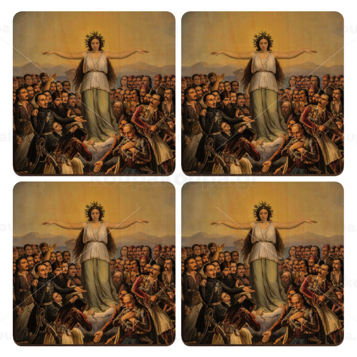 Η Ελλάς Ευγνωμονούσα, ΣΕΤ x4 Σουβέρ ξύλινα τετράγωνα plywood (9cm)