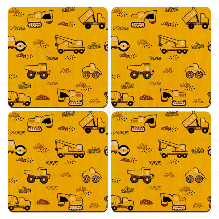 Car construction, ΣΕΤ x4 Σουβέρ ξύλινα τετράγωνα plywood (9cm)
