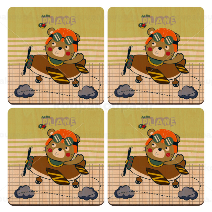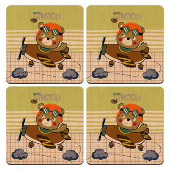 Kids Plane, ΣΕΤ x4 Σουβέρ ξύλινα τετράγωνα plywood (9cm)