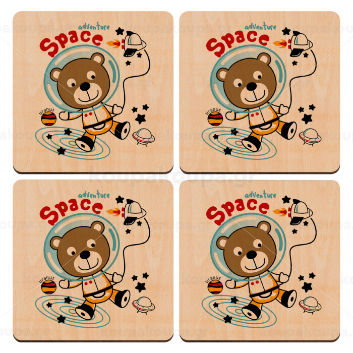 Kids Space, ΣΕΤ x4 Σουβέρ ξύλινα τετράγωνα plywood (9cm)