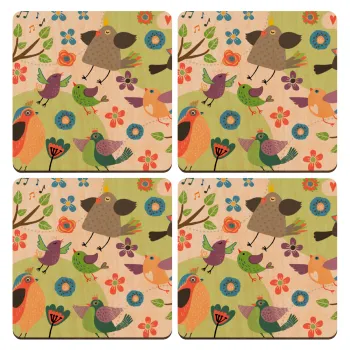 τα πουλάκια, ΣΕΤ x4 Σουβέρ ξύλινα τετράγωνα plywood (9cm)