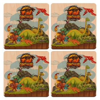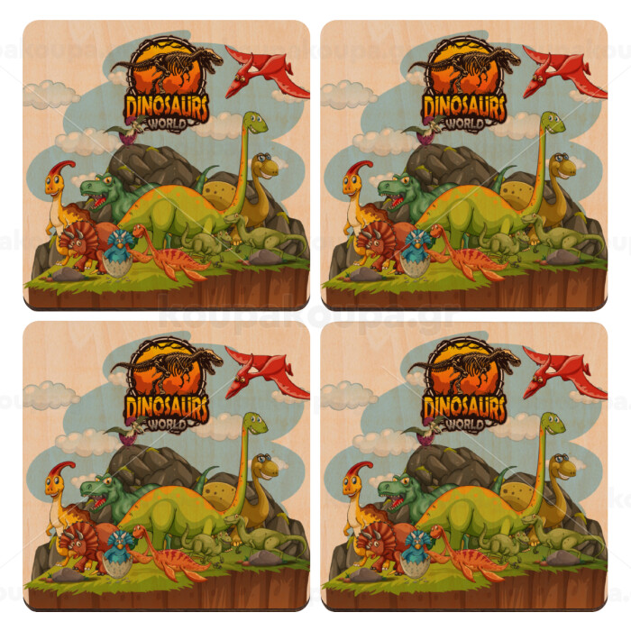 Dinosaur's world, ΣΕΤ x4 Σουβέρ ξύλινα τετράγωνα plywood (9cm)