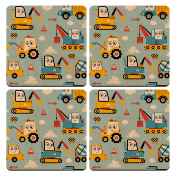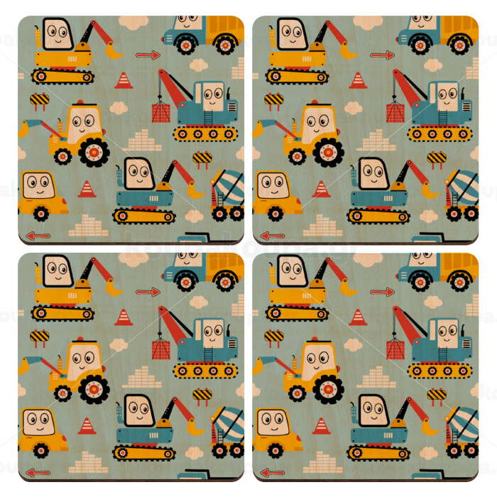 Hand drawing building truck, ΣΕΤ x4 Σουβέρ ξύλινα τετράγωνα plywood (9cm)