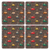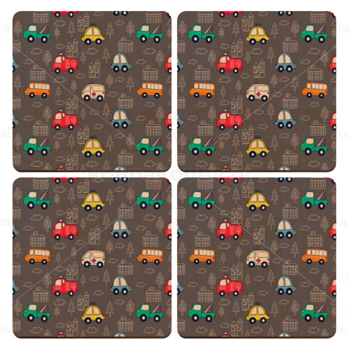 Hand drawn childish set with cars, ΣΕΤ x4 Σουβέρ ξύλινα τετράγωνα plywood (9cm)