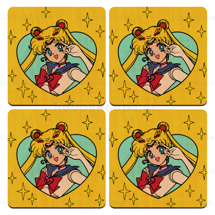 Sailor Moon star, ΣΕΤ x4 Σουβέρ ξύλινα τετράγωνα plywood (9cm)