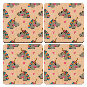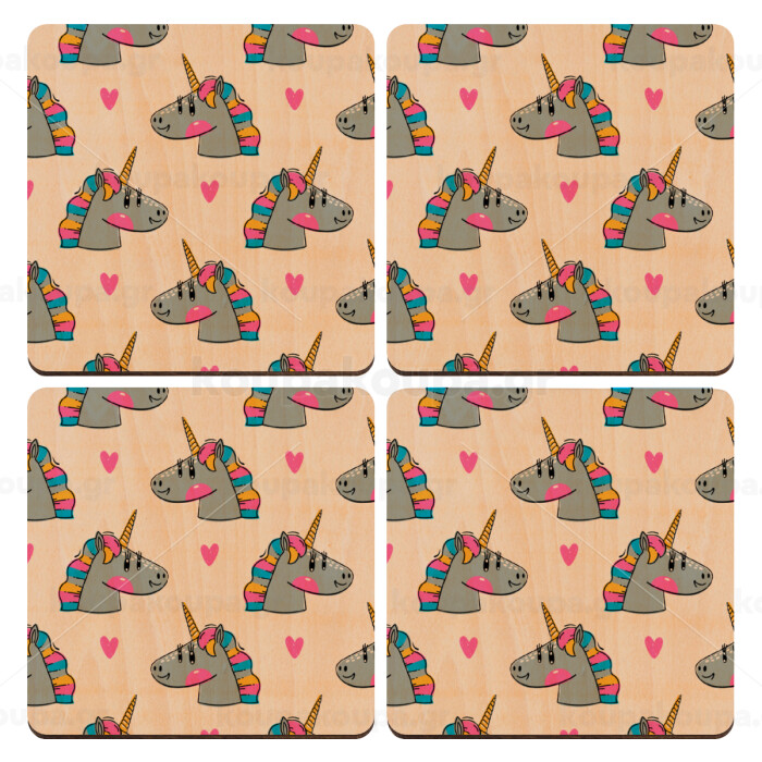 Unicorn, ΣΕΤ x4 Σουβέρ ξύλινα τετράγωνα plywood (9cm)