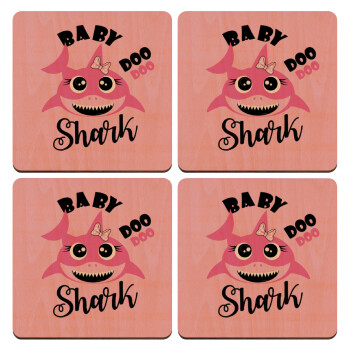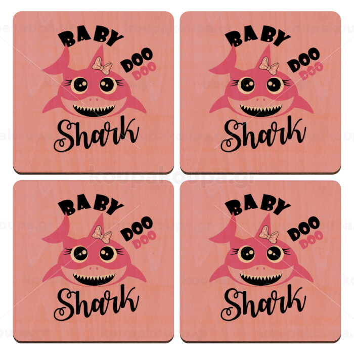 Baby Shark (girl), ΣΕΤ x4 Σουβέρ ξύλινα τετράγωνα plywood (9cm)