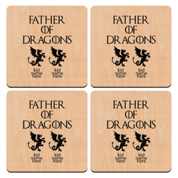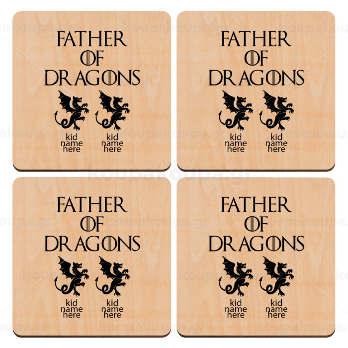 GOT, Father of Dragons (με ονόματα παιδικά), ΣΕΤ x4 Σουβέρ ξύλινα τετράγωνα plywood (9cm)